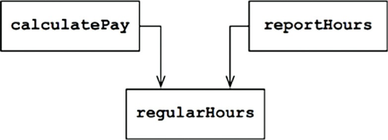 這最致命。假設 calculatePay 和 reportHours 都依賴一個共用私有演算法 regularHours() 來計算正常工時。