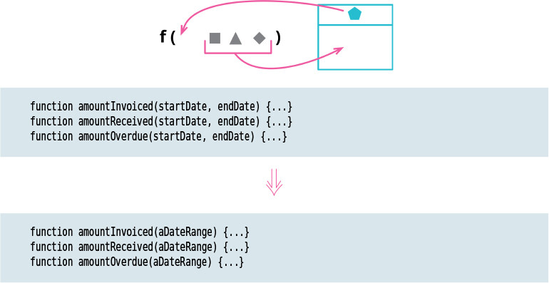 當一組參數常一起穿梭於各函式間時,最好將它們打包成一個專屬物件。