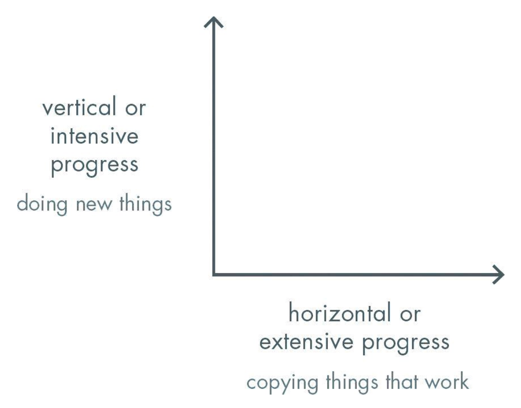 人類歷史的進步可以歸納為兩種截然不同的模式。理解這兩者的差異,是理解本書「從 0 到 1」概念的關鍵。