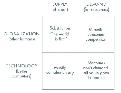要理解人機關係,首先要區分「全球化」與「科技」在本質上的不同: